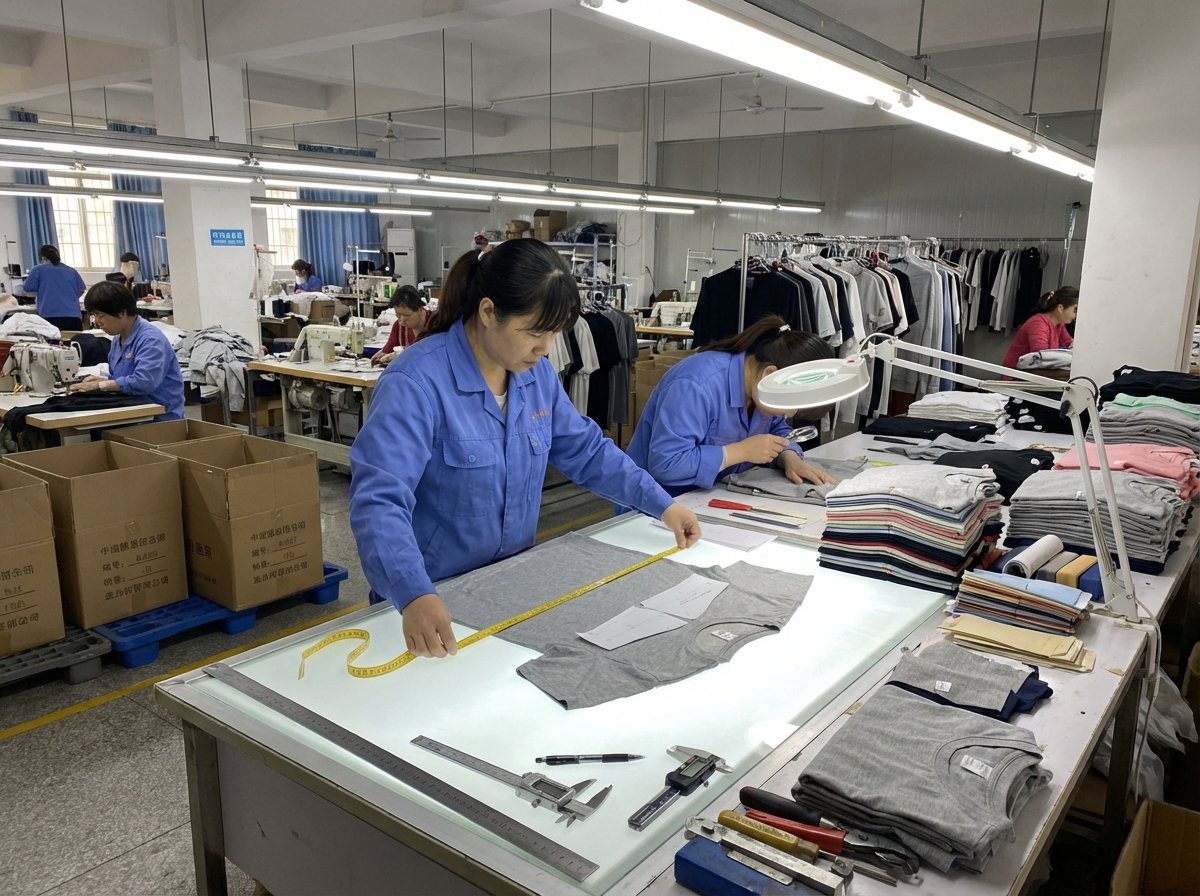 Quality checks from fabric inspection to final packing.