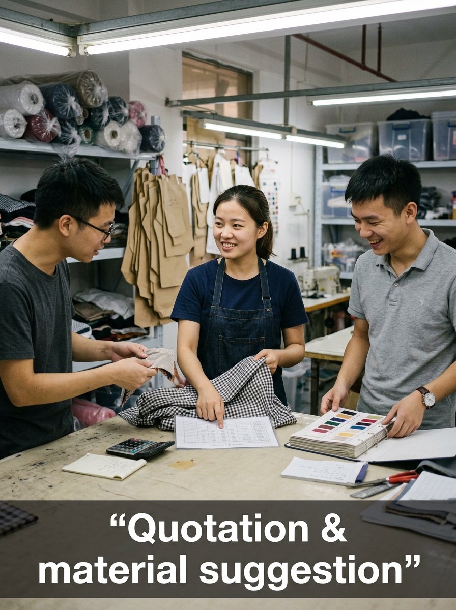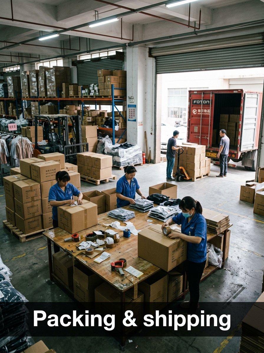 As a professional clothing factory in China, we help our customers succeed in wholesale apparel with flexible low MOQ solutions and efficient sourcing support. We can provide free fabric color cards and help you select suitable materials from a wide range of fabric options. Our standard MOQ is usually 50–100 pieces, and we can also adjust production quantities based on your actual requirements. This helps reduce inventory pressure while giving your brand more flexibility in product development and market testing.