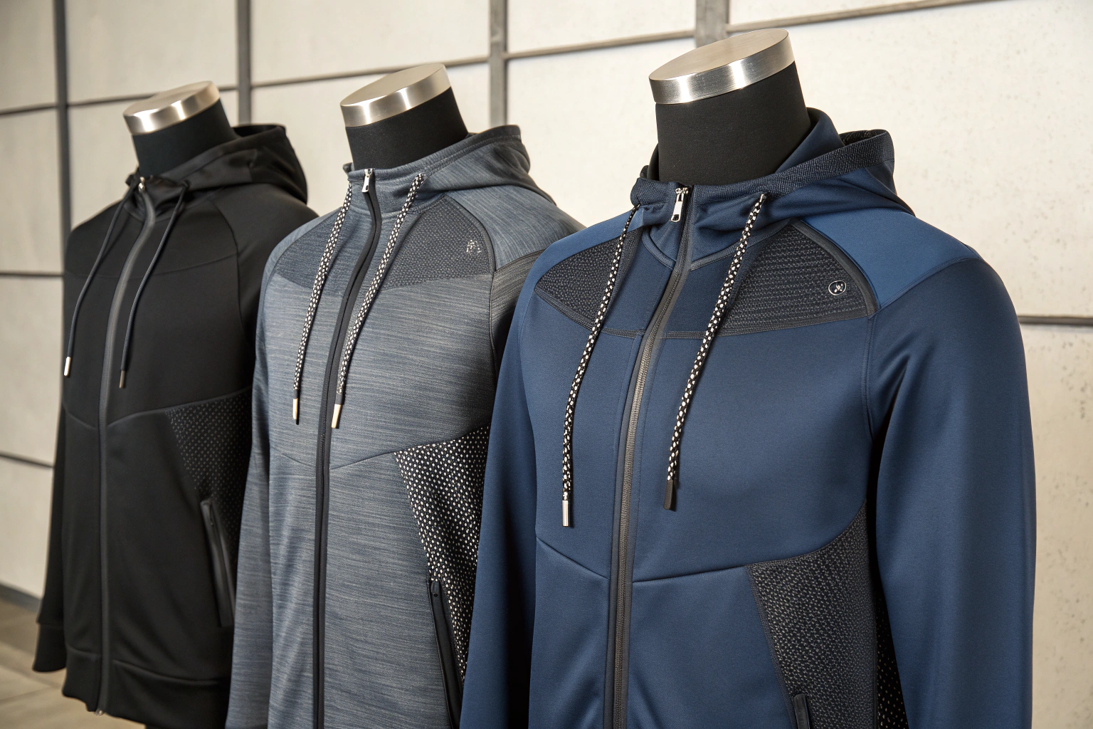 Technical hoodies use specialized materials like spandex-polyester blends and mesh vent panels, combining function with innovation.