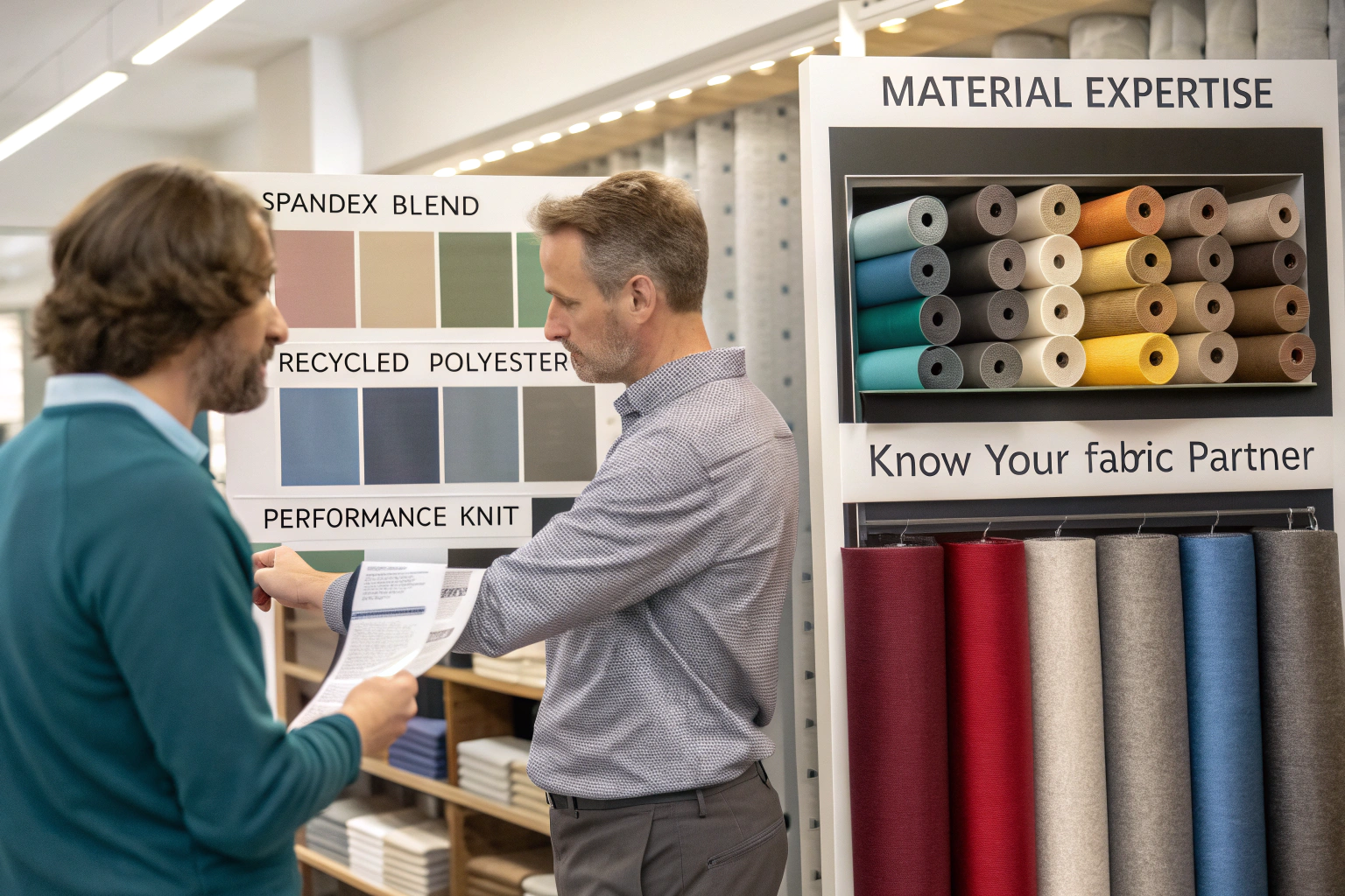 Ask if they have experience with your specific material, like spandex blends, recycled poly, or performance knits.