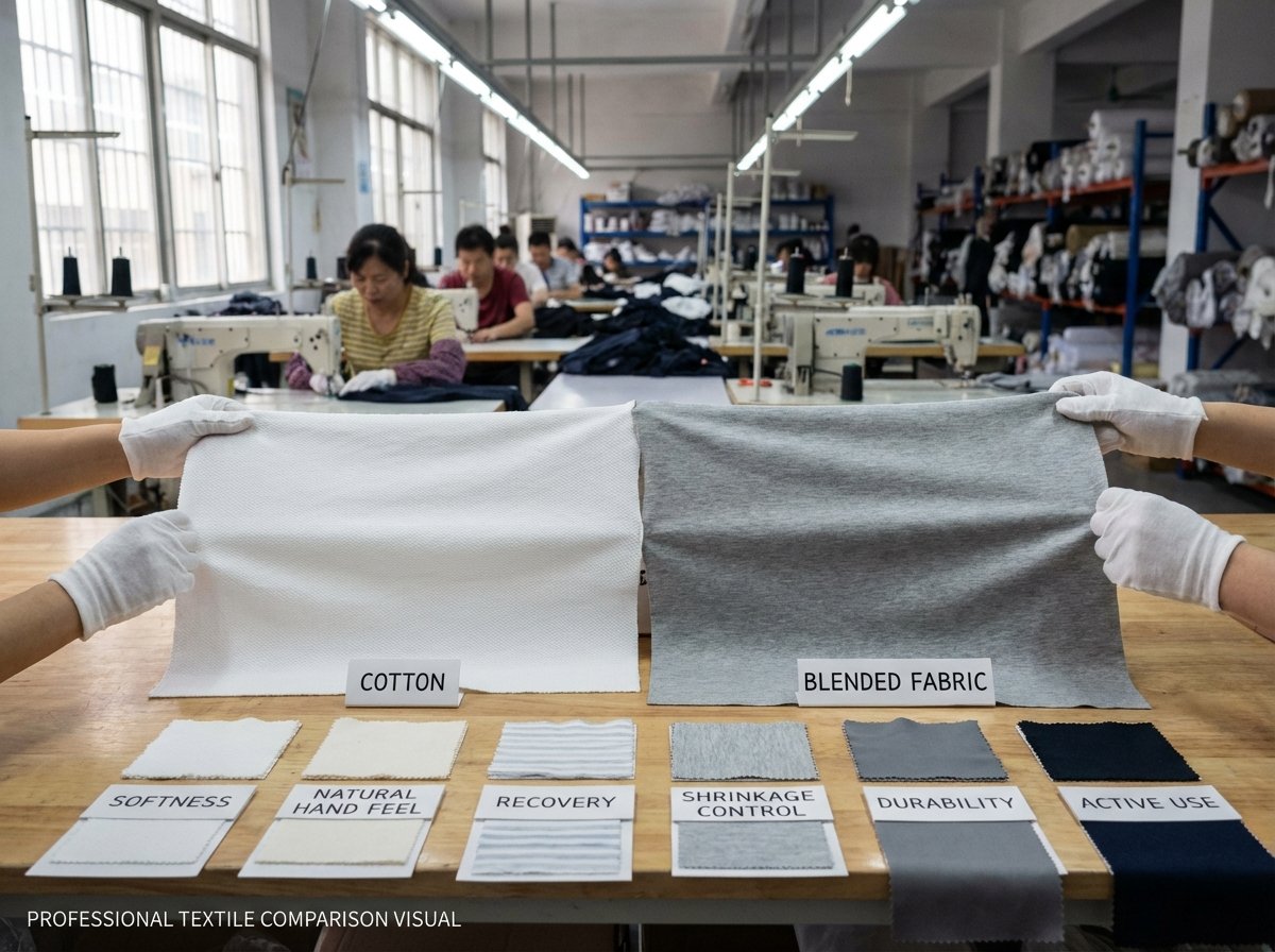 Cotton T-shirts are often preferred for softness, natural handfeel, and classic everyday wear, while blended fabrics can improve recovery, reduce some forms of shrinkage, increase durability, and support active or fashion-specific use. The right choice depends on the application.